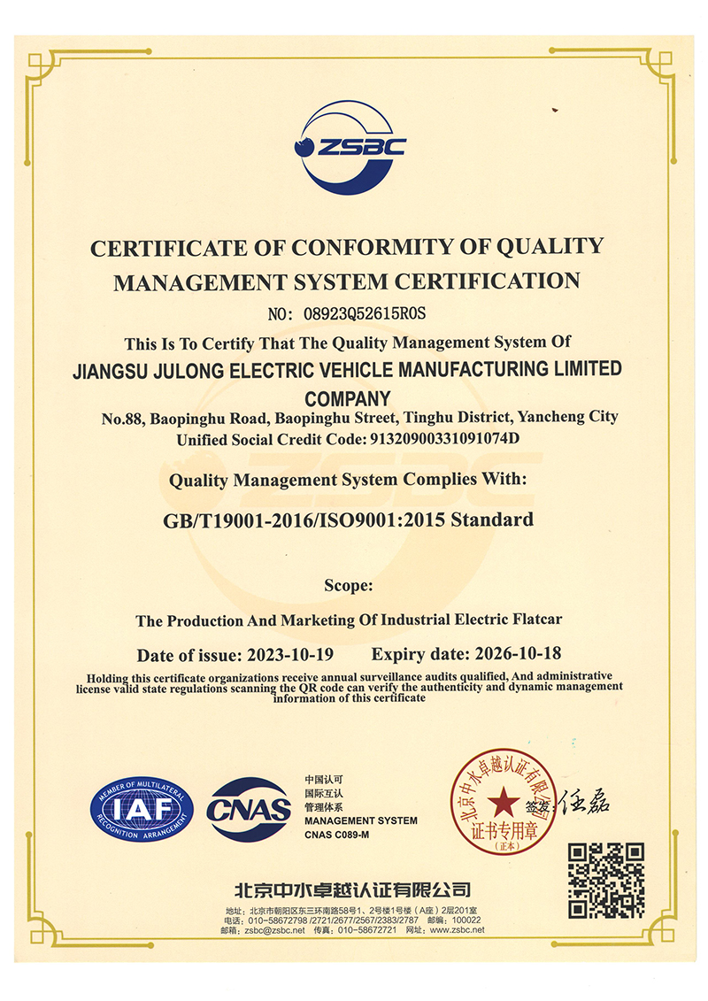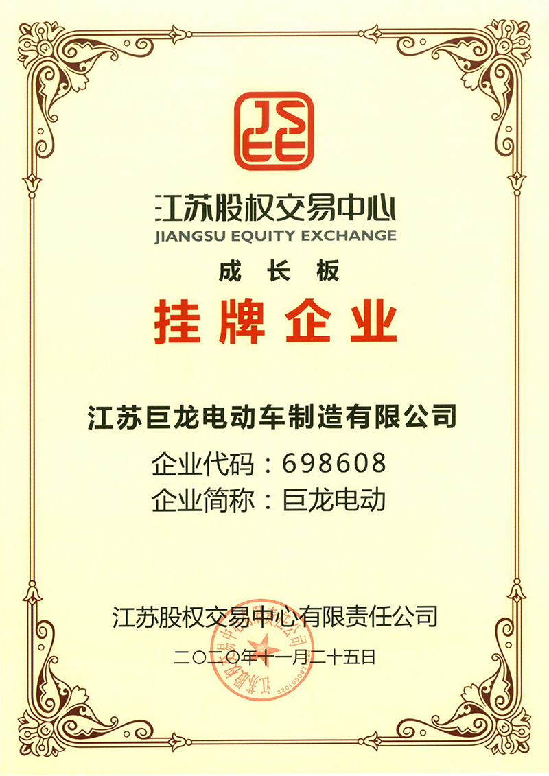 江蘇巨龍電動車制造有限公司是國內具有20年集研發、生產、銷售、售后于一體的專業電動車輛設備公司。位于江蘇省鹽城市高新區(原市開發區),占地20000平方米,建筑面積約1 2000平方米,緊鄰寧靖鹽高速、204國道、南洋飛機場,交通便捷。公司現有員工95余人,專業技術人員35余人,工程技術人員10人。擁有良好的制造、檢測、實驗設備和完善的技術服務體系,為全國大、中型工礦企業、鋼廠、機械冶金、電廠、車站、港口、機場、市政環保部門、城管、公安、旅游景點、小區物業等行業提供雄厚的技術力量,是國內生產電動搬運車的專業生產廠家。標志著江蘇巨龍邁向發展的新臺階,必將促進巨龍公司更加快速、長足的發展。
